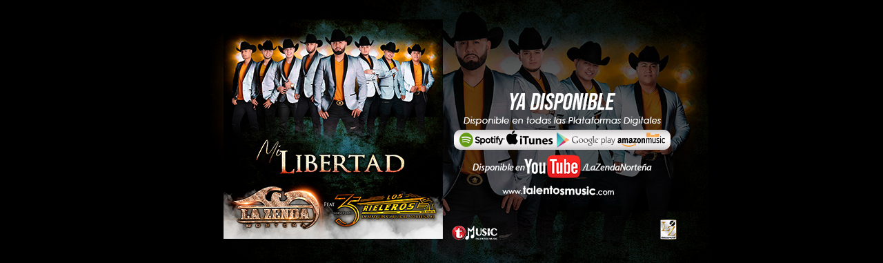 ¡Gran estreno en plataformas digitales de Mi Libertad melodía de La Zenda Norteña a dueto con Los Rieleros del Norte! Una fusión de ritmo y sabor que pondrá a más de uno a bailar, Mi Libertad esta Disponible en Spotify, Google Play Music, iTUNES y Amazon Music. Búscala en tu plataforma favorita.