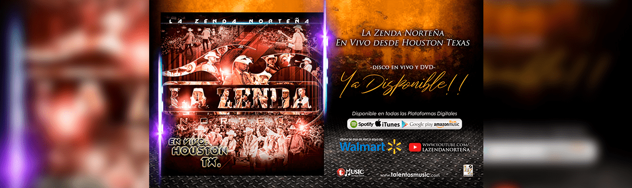 Espectacular PRIMERA FILA con La Zenda Norteña desde Houston, Texas. A partir de hoy esta disponible en plataformas digitales como Spotify, iTUNES, Google Play Music y Amazon Music y en su canal de YouTube su CONCIERTO completamente en VIVO. Además de poder adquirir el DVD físico en cualquier Walmart de la Unión Americana.