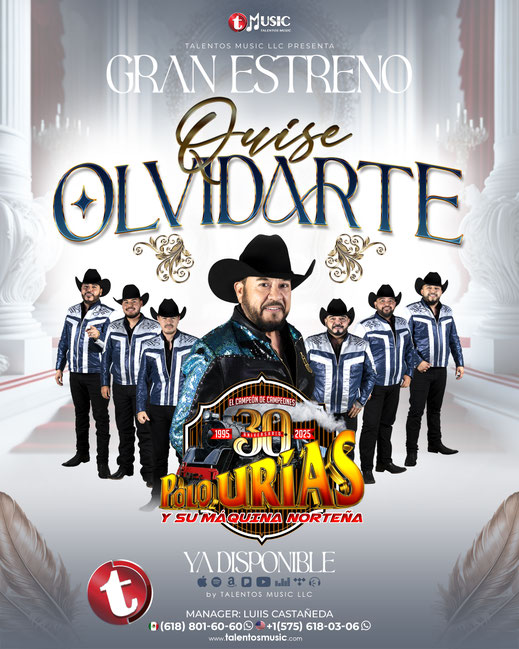 El Campeón de Campeones, Polo Urías y Su Máquina Norteña, celebrando más de 30 años de trayectoria, estrenando su más reciente sencillo titulado “Quise Olvidarte”.