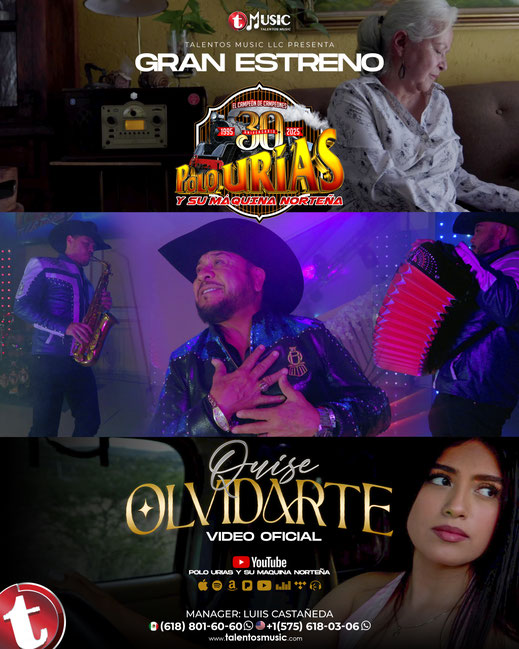 De la mano de Talentos Music, este lanzamiento mantiene viva la esencia del género regional mexicano que ha posicionado a Polo Urías como uno de sus máximos exponentes. Con su inconfundible estilo y voz, “Quise Olvidarte” conecta con aquellos amores que dejan huella y que, a pesar del tiempo, siguen presentes en el corazón.